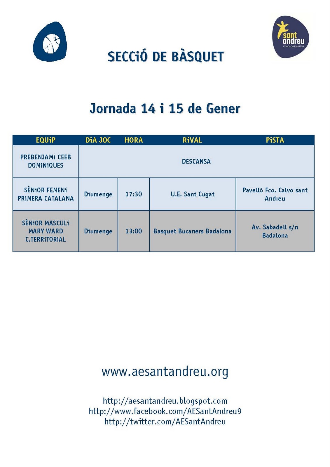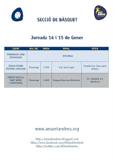 Horaris de Joc jornada 14 i 15 de Gener.13 de gener de 2012basquet, Futbol Sala, hoquei linia, horaris, seccionsA continuació us detallem els horaris de joc de les diferents seccions:FUTBOL SALAHOQUEI LINIABÀSQUET