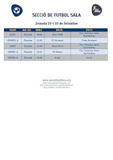 Segona jornada de lliga per els Juvenils A i B i per l’Infantil A de la seccióde Futbol Sala de l’AE Sant Andreu.